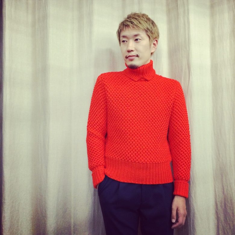 発色のよい色目とざっくりとした素材感、着丈の短さも良い感じです!
