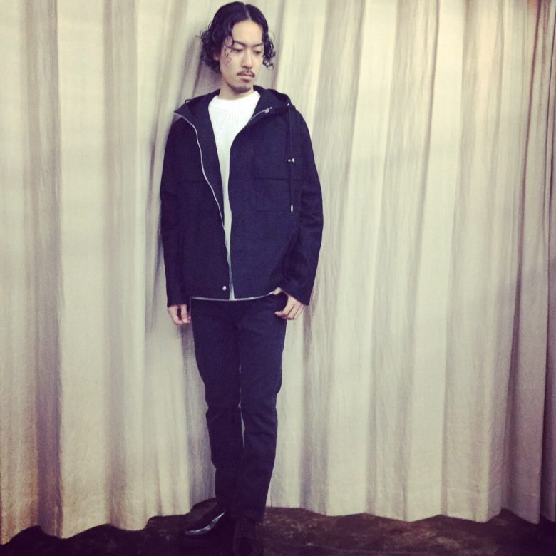 独特のハリのある素材と丸みのあるシルエットが特徴のhooded jacket