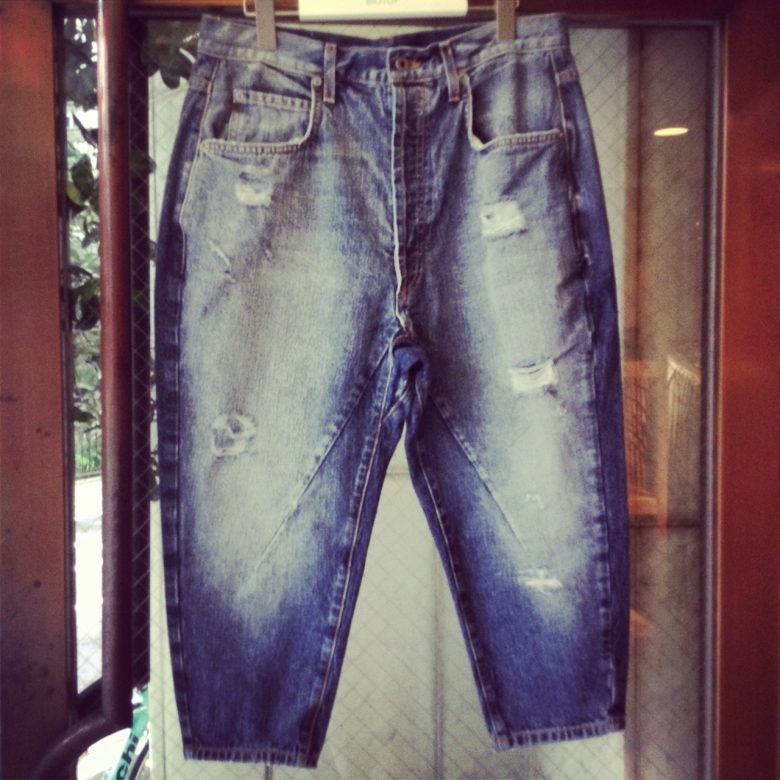 股上が深いディテールに加え、細部にダメージ加工が施されている存在感のあるデニム