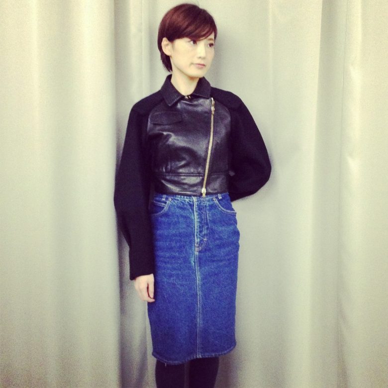 スリーブのボリュームが印象的なレザージャケット。ショート丈とのバランスが素敵です!