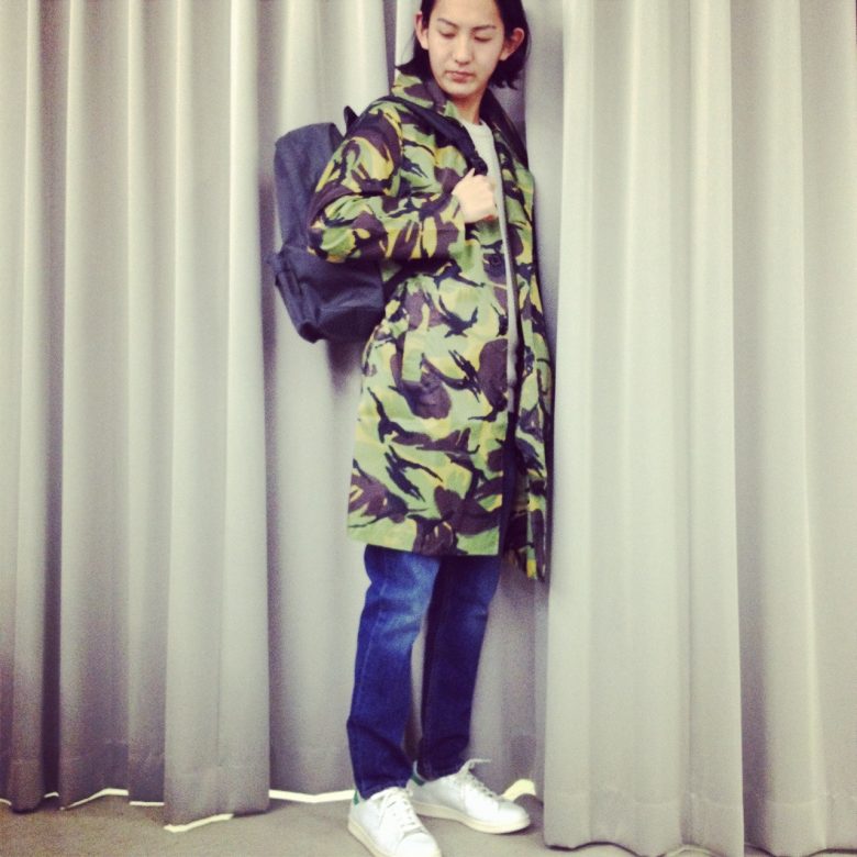 レインコートもカモ柄だと気分が上がります。