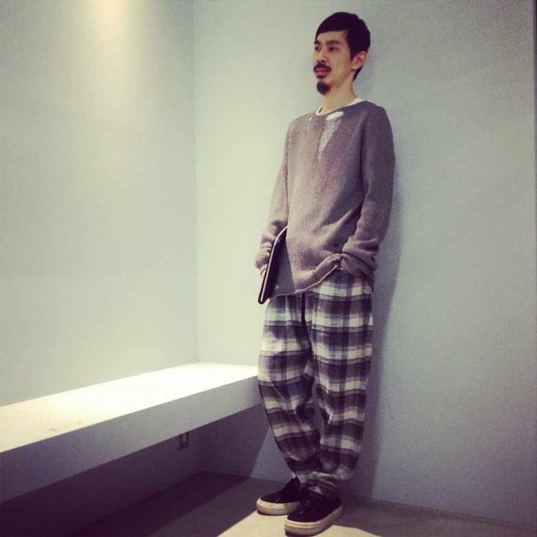 程よいルーズさと、洒落っ気を兼ね備えたSUNSEAならではのニットとパンツ。