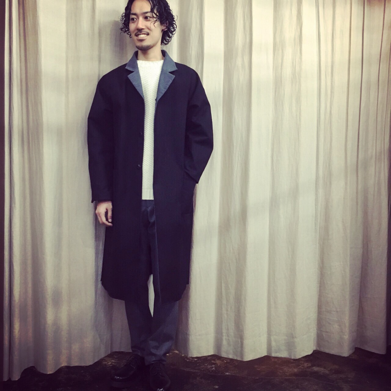 張りのある頒布素材を使用したコートです!身幅にゆとりを持たせ長めの着丈に仕上げたデザインは、SUNSEAならではです!