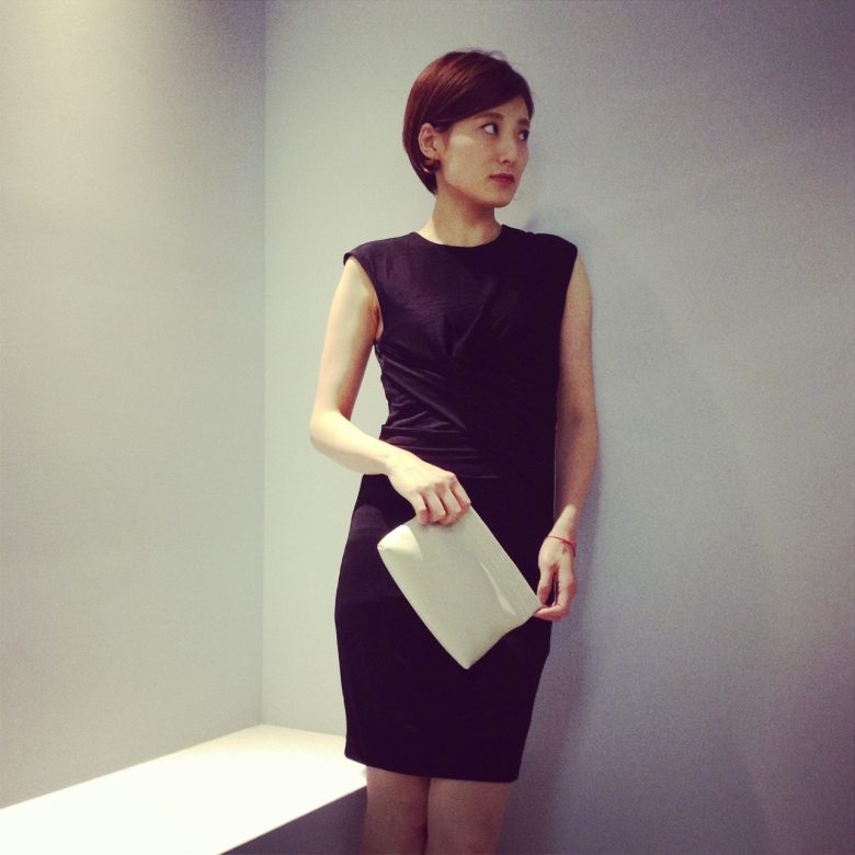 ウエストのドレープが身体のラインを美しくみせてくれます。