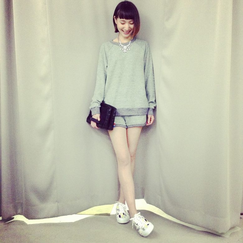 mintgreen×grayのスウェットセットアップ。