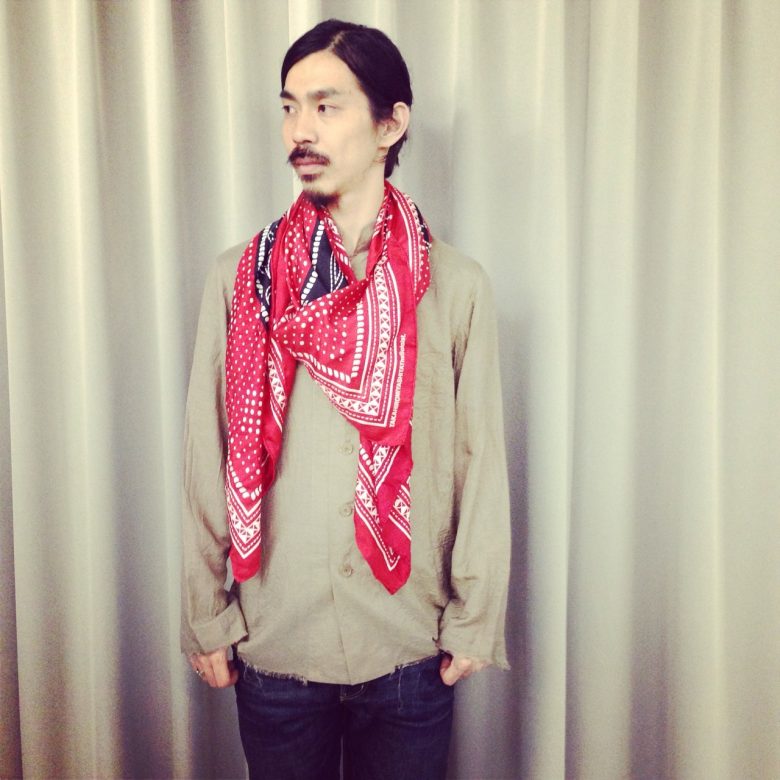 02.05.2015 TAKAHIROMIYASHITA the soloist 2tones thick silk scarf L ¥41,900+tax シルクの大判スカーフはシャツ、カットソーのアクセントとして大活躍です!デザインの切り替えもおすすめです! soloist ソロイスト