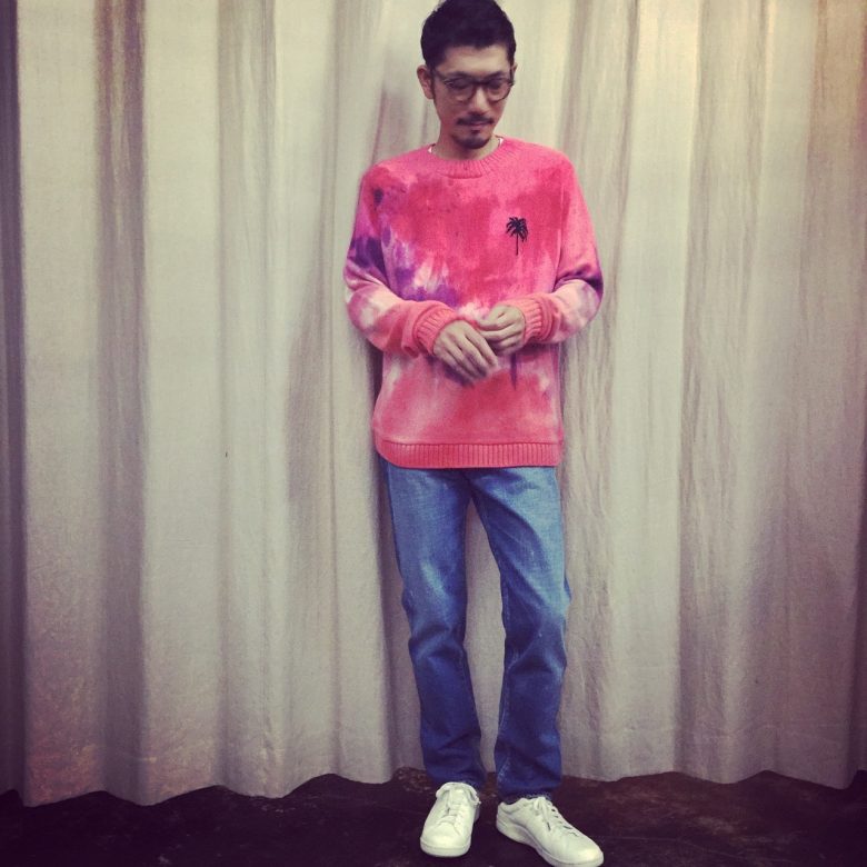 素材にはもちろん、100%カシミヤを使用し独特なカラーリングに染め上げられたエクスクルーシブニット。