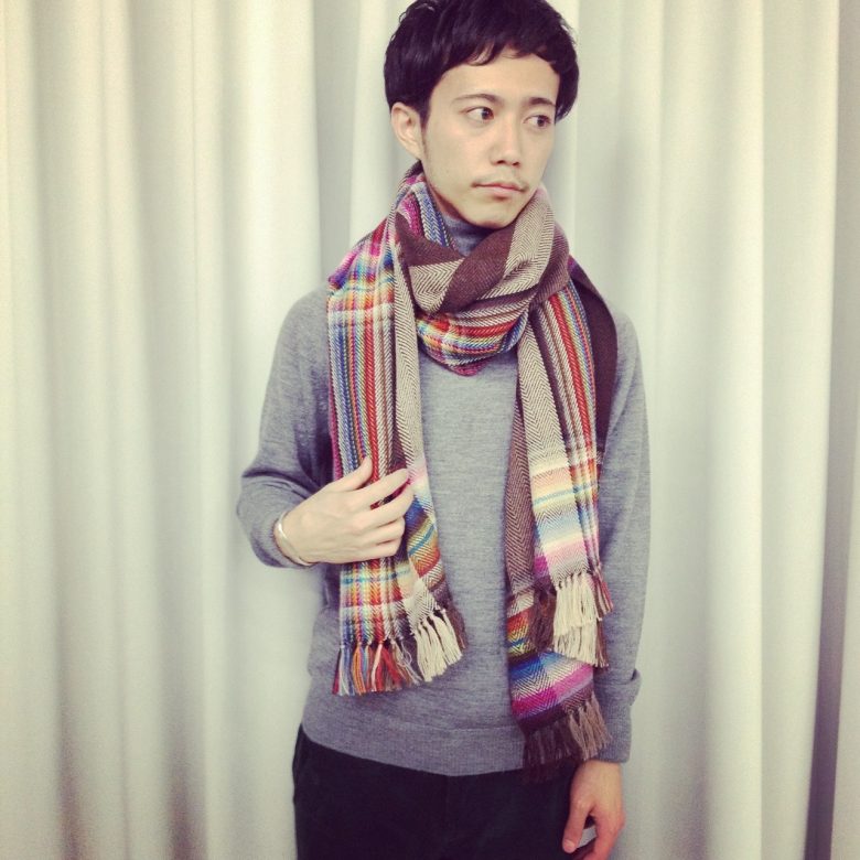 タフに使えるハイゲージニットに発色の綺麗なスカーフは、どちらも長年愛用できるアイテムです。