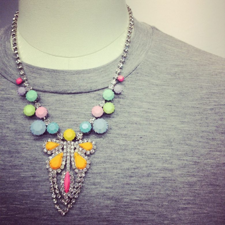 蛍光カラーで仕上げたストーンとスワロフスキーのコラボレーション。