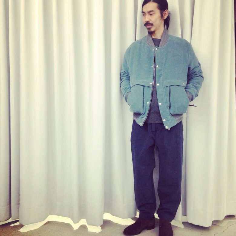 26.10.2015 UMIT BENAN bomber jacket price…128,000+tax size…light blue モールスキンのブルゾンは綺麗なカラーリングとサイズ感が魅力です。リブの切り替えもアクセントに! umitbenan