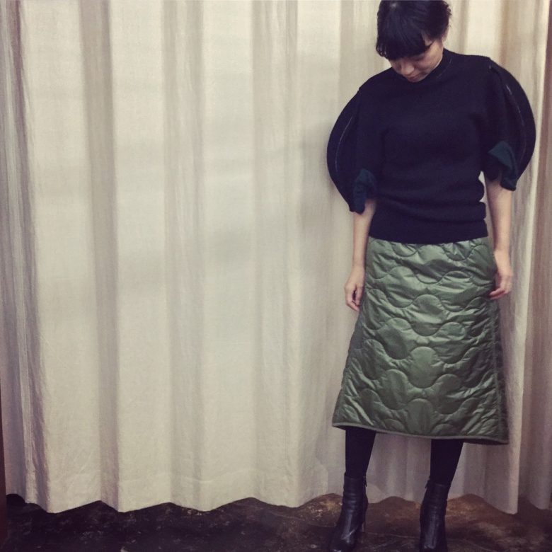 OSAKA 19.09.2016 USミリタリーのデザインを変換した キルティングスカートは 個性的で遊び心溢れるアイテムに♡ skart HYKE ¥38,000+tax tops TOGA ¥64,000+tax col…white,black 16aw hyke toga WEAR