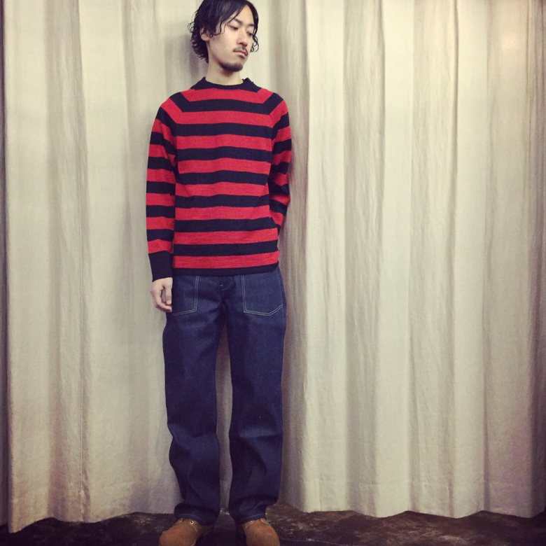軽いタッチのボーダーニットで春らしい軽快さをプラス。