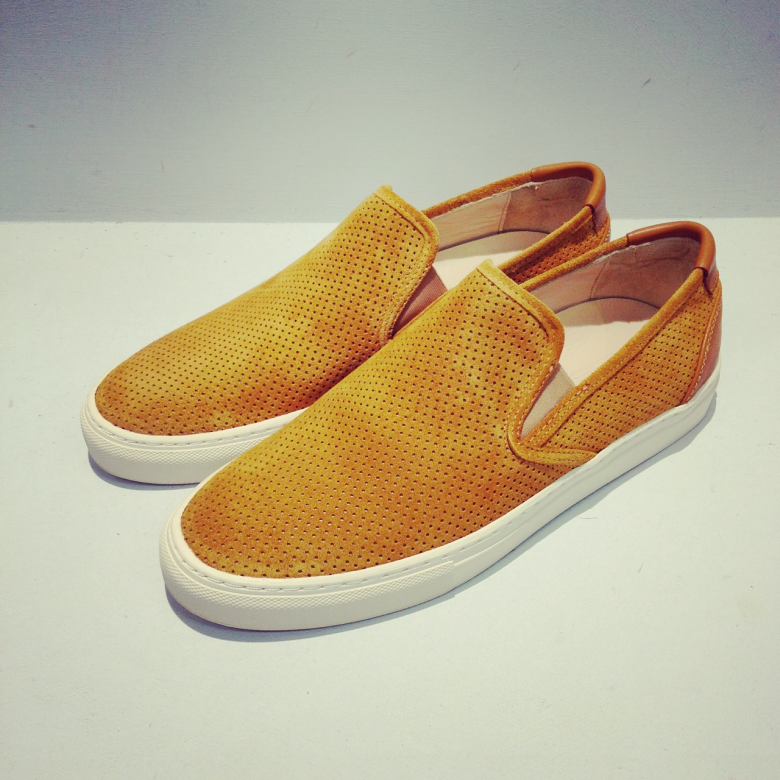 パンチングスウェードのスリッポンスニーカー。