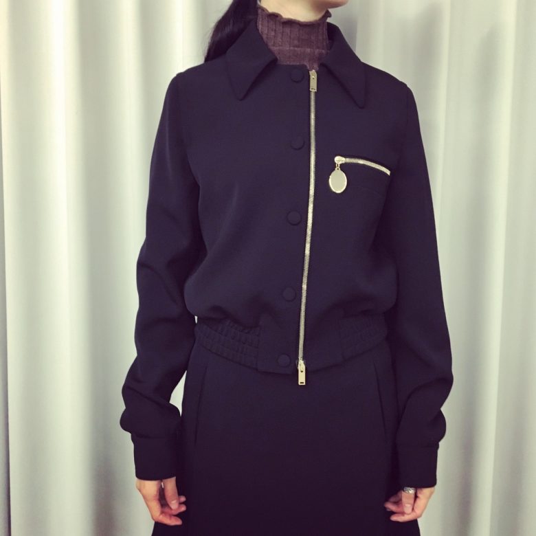 zipを閉めてコンパクトに着るとまた違った印象に。