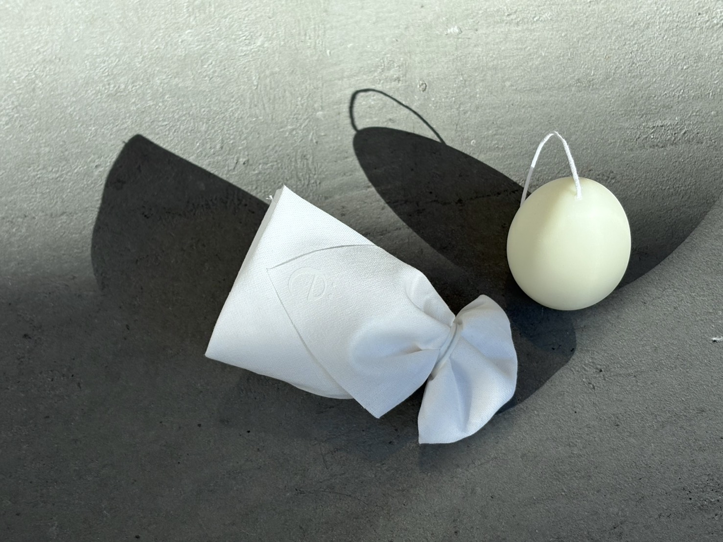 火を灯して香りを広げるだけでなく、そのまま置いてサシェとしてもお使いいただけ、空間にそっと寄り添う心地よさをもたらします。